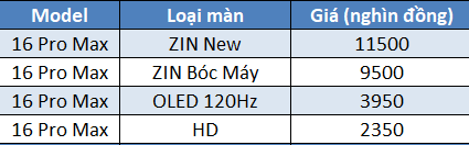 - Giá trên đã bao gồm công thay thế, KHÔNG phát sinh thêm chi phí nào khác.
